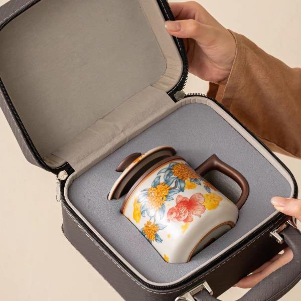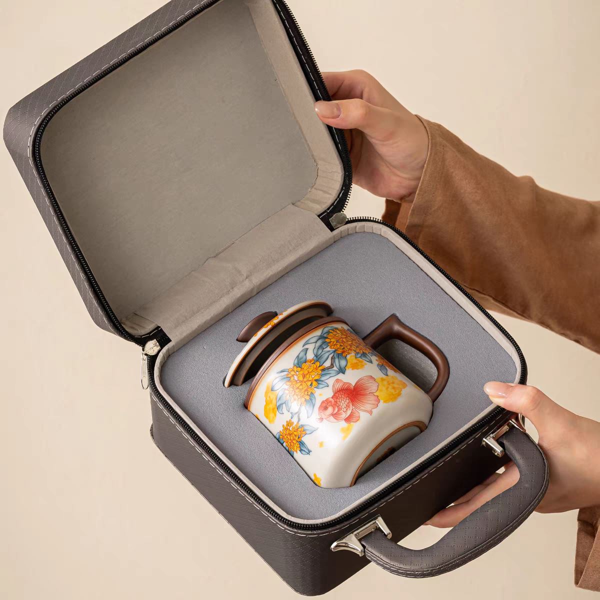 配 制: 1杯 1蓋 1茶漏 1收藏證書 1禮盒 材質(zhì):汝黃瓷 規(guī)格:12.8*11.7cm 禮盒19.5*17.8cm 容量:500ml 推薦說明:馬年開門紅禮品,馬上有錢,馬上有福。金鯉桂花,寓意金貴,連年有魚。配收藏證書,皮盒裝。亞黃汝瓷,瑪瑙入釉,蟬翼開片。技術(shù)新品。畫面堆料技術(shù),富有立體浮雕質(zhì)感,真實感強。杯身開片,可養(yǎng)瓷。