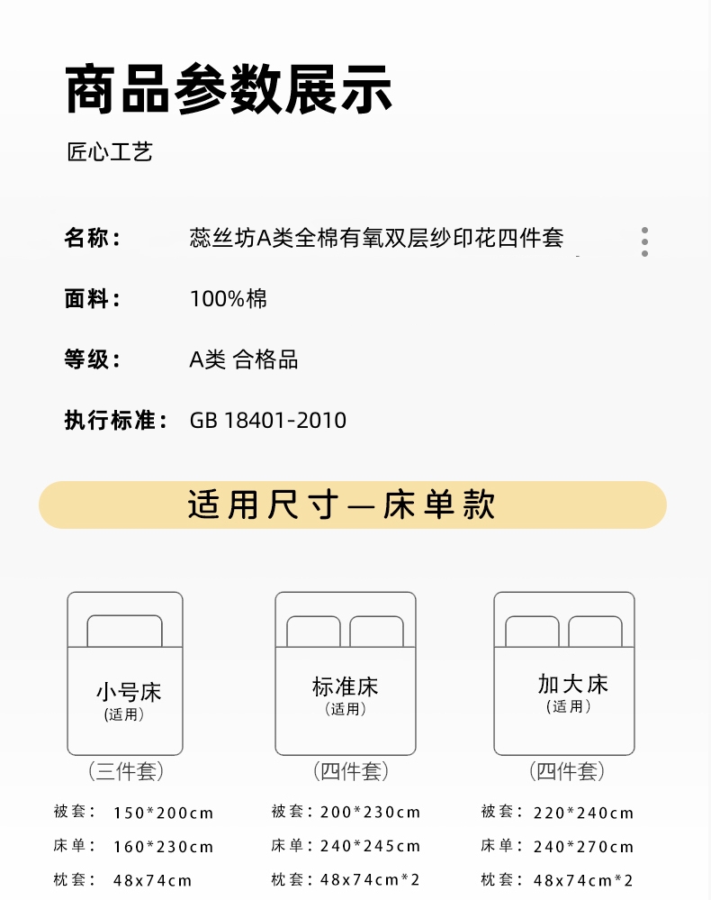 規(guī)格:1.5/1.8米床適用 被套200*230cm 床單240*245cm 枕套48x74cm