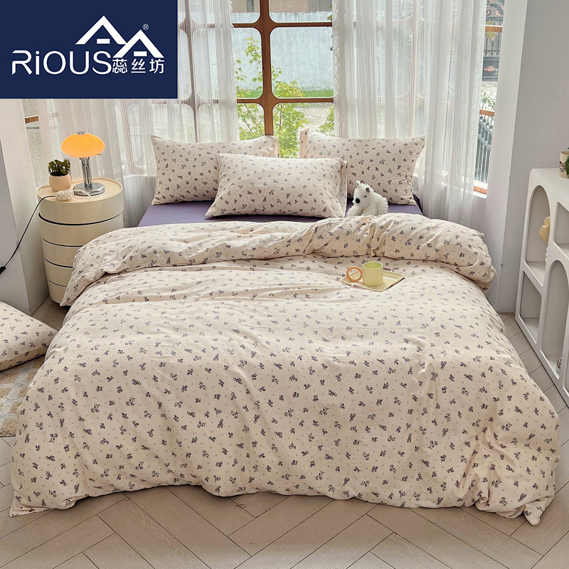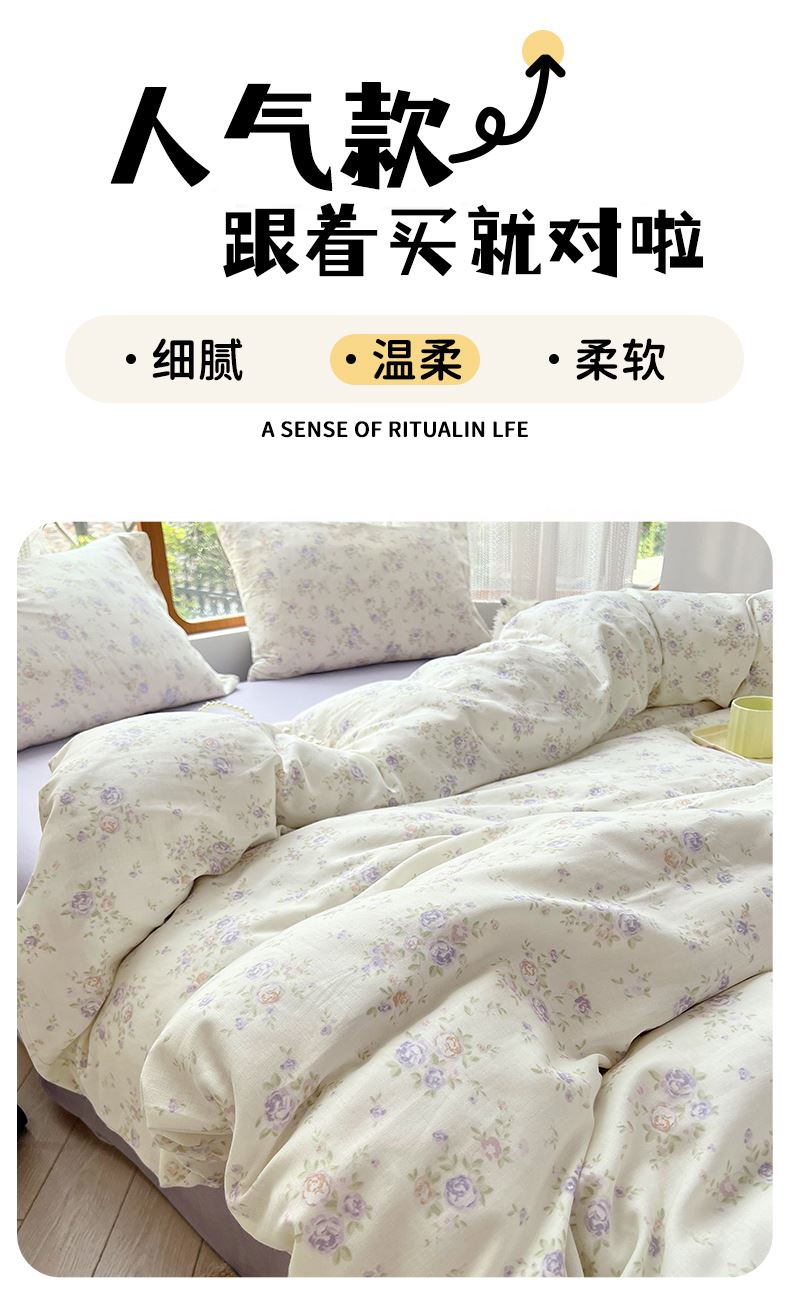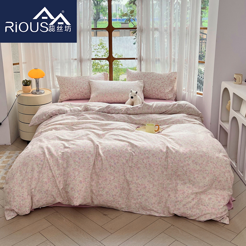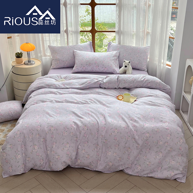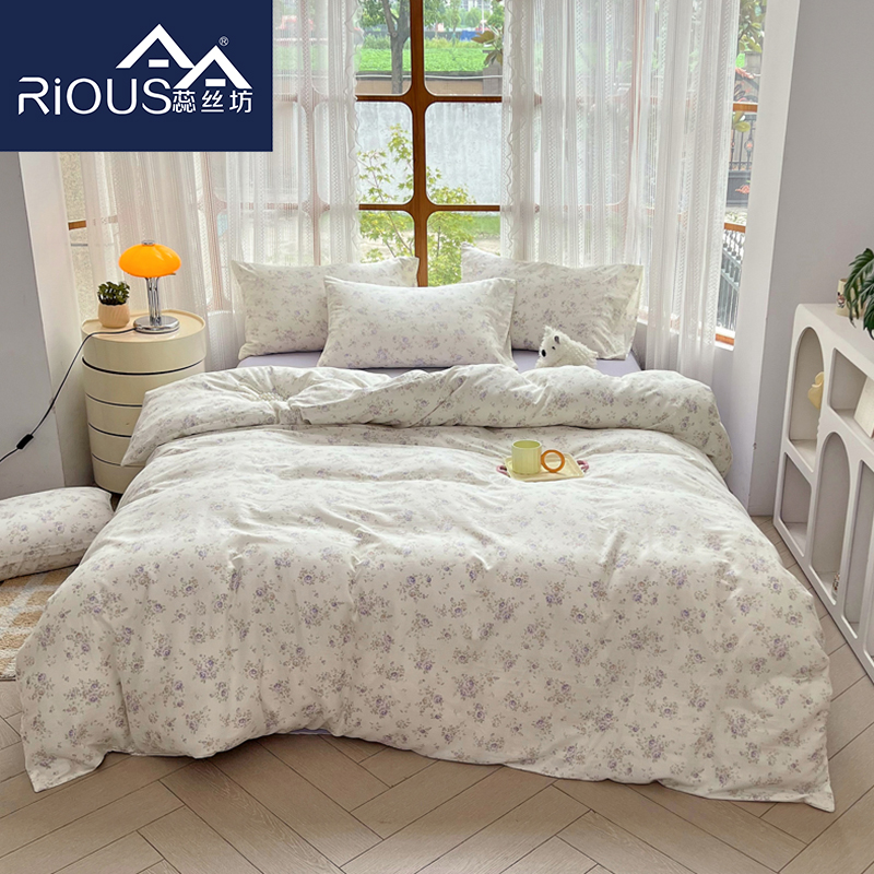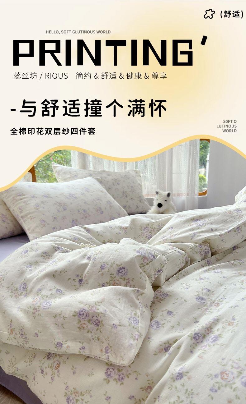 蕊絲坊家紡全棉有氧雙層紗印花四件套