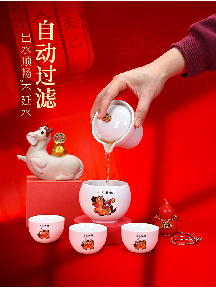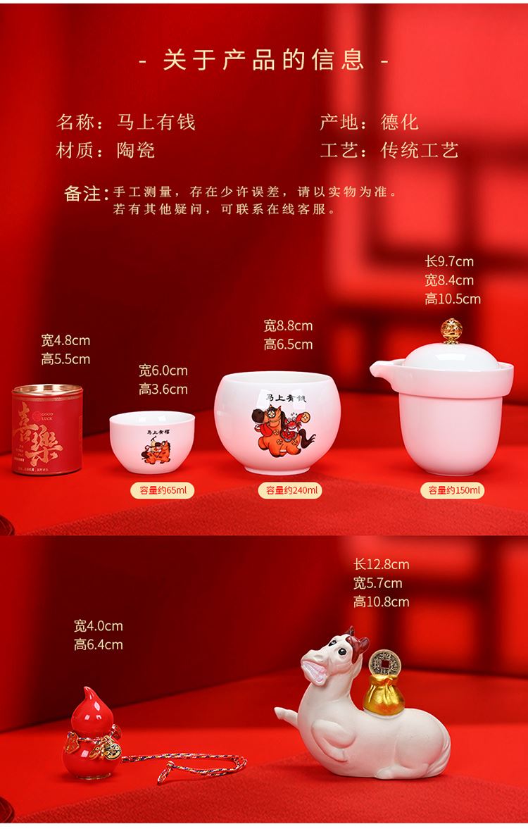 壺:8*8*10.5厘米150ml 品茗杯:8.8*6.5厘米240ml 禮盒:38*12*28厘米 天然礦物釉,高溫?zé)茻o鉛鎘,紅色禮盒,喜氣洋洋,暖心配置,商務(wù)實用,送禮自用兩相宜