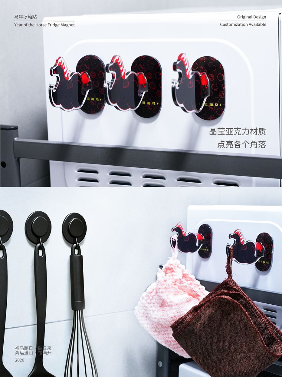 功能:即可作為冰箱貼,還可作為掛鉤使用,方便懸掛鑰匙、圍巾等小物件 材質(zhì):采用環(huán)保樹(shù)脂亞克力,無(wú)毒無(wú)害,色彩鮮艷,不易褪色