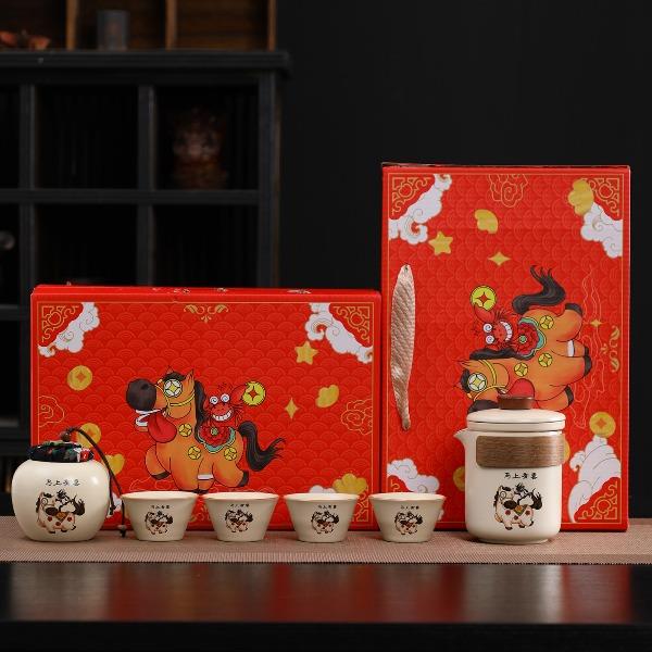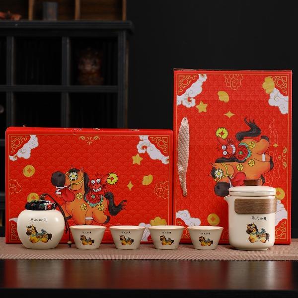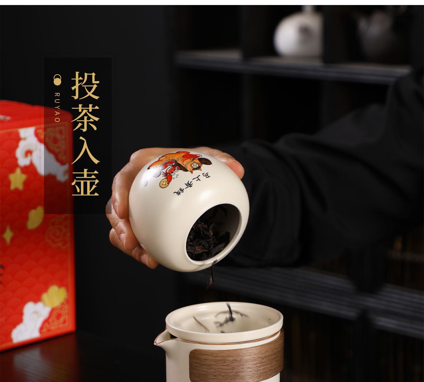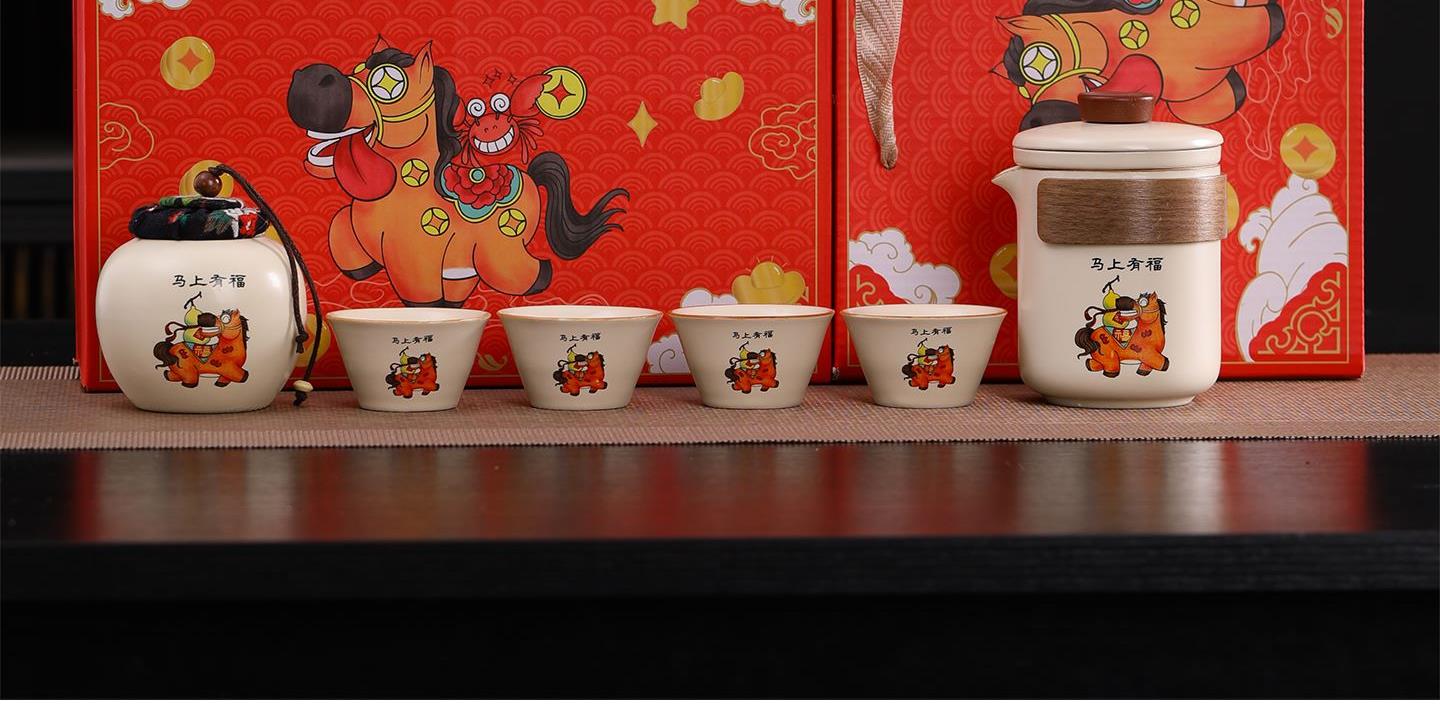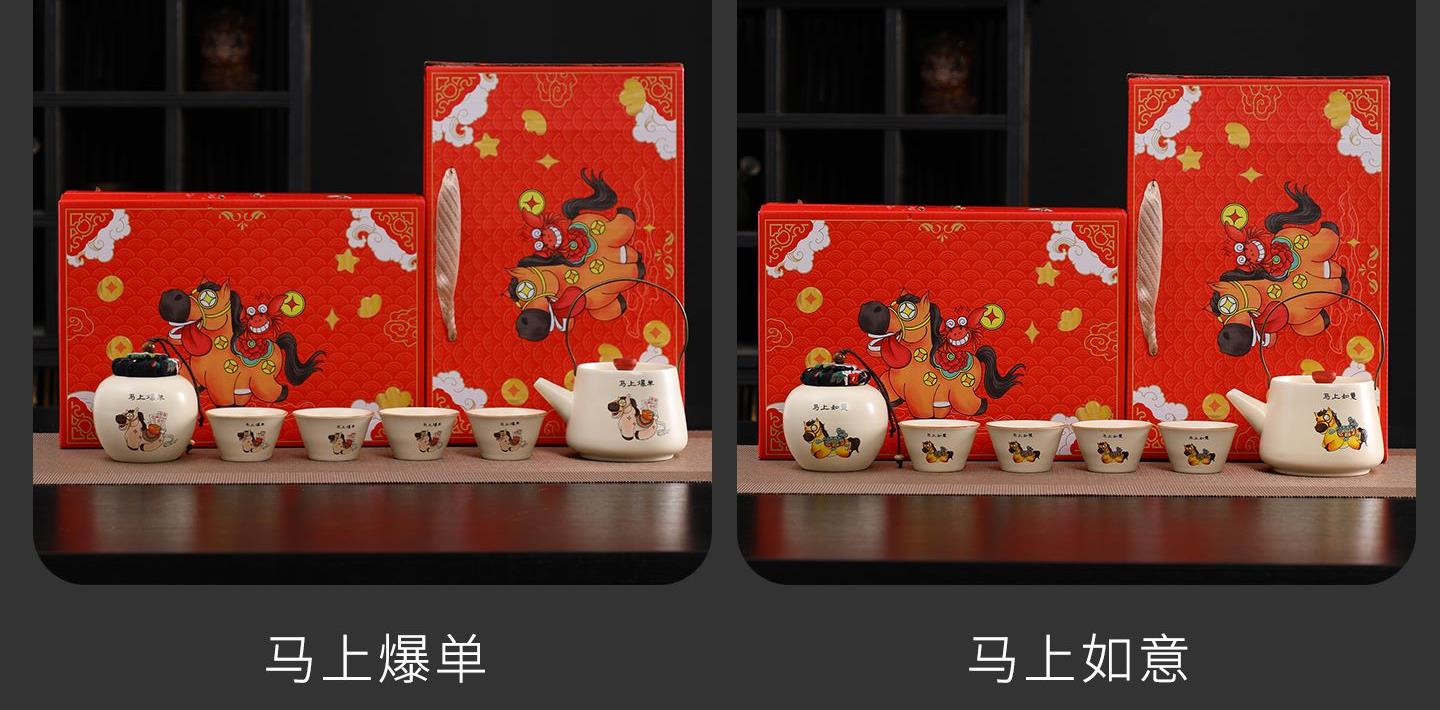 瓷語花香開門紅馬上有喜汝窯茶具套裝 禮品已成功加入PPT!
