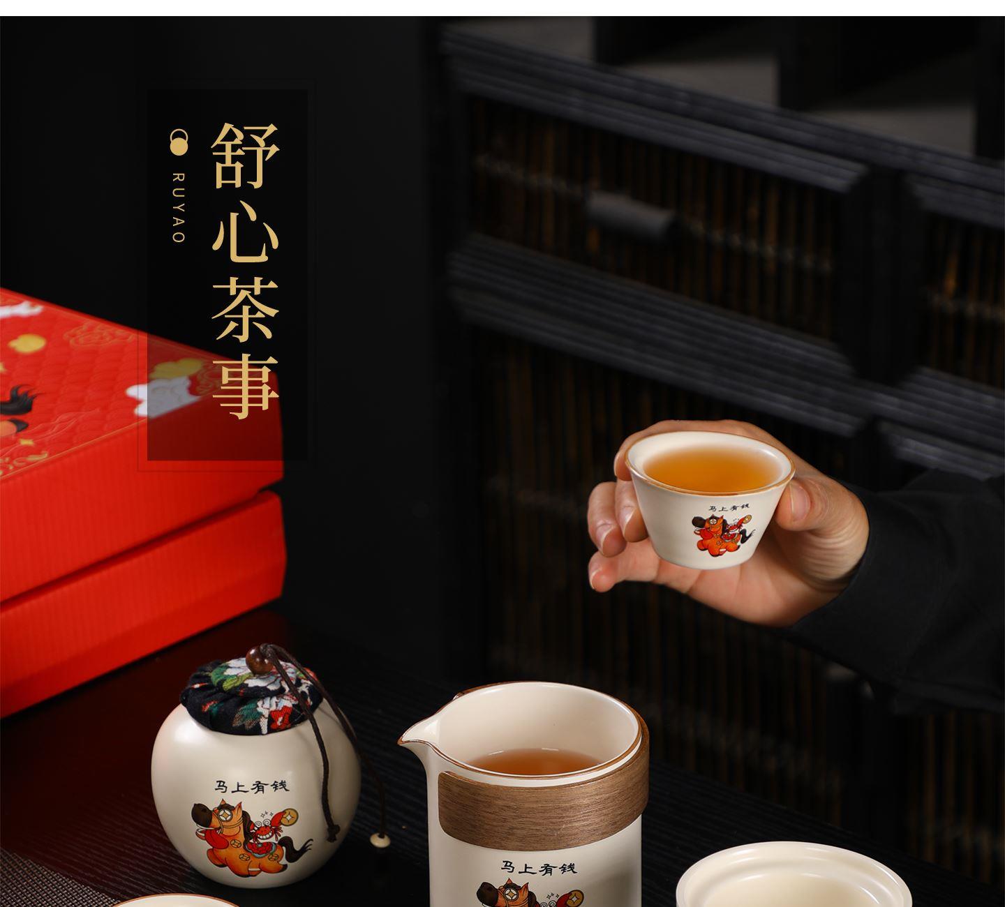 瓷語花香開門紅馬上有喜汝窯茶具套裝