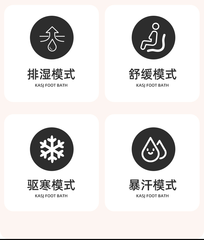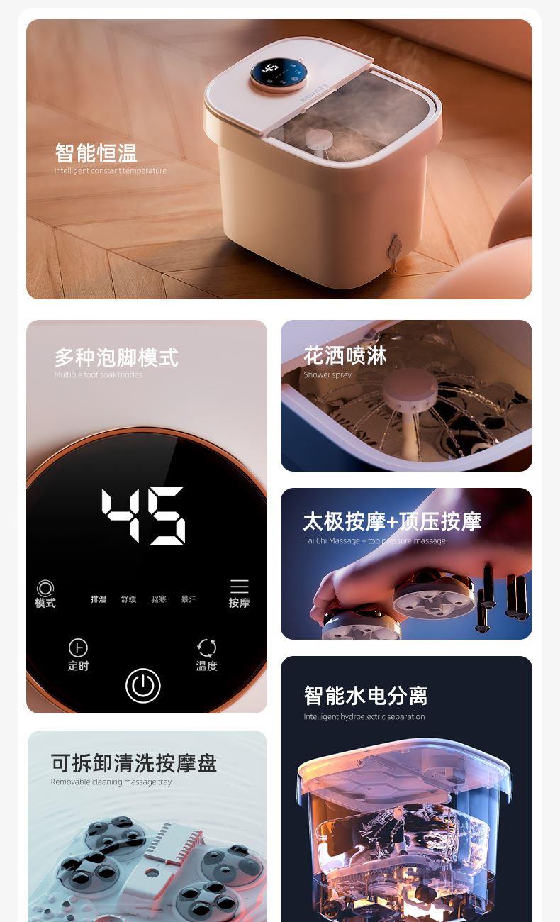 1.智能恒溫,花灑噴淋 2.太極按摩+頂壓按摩 3.可拆卸清洗按摩盤 4.排濕模式,舒緩模式 5.驅(qū)寒模式,暴汗模式