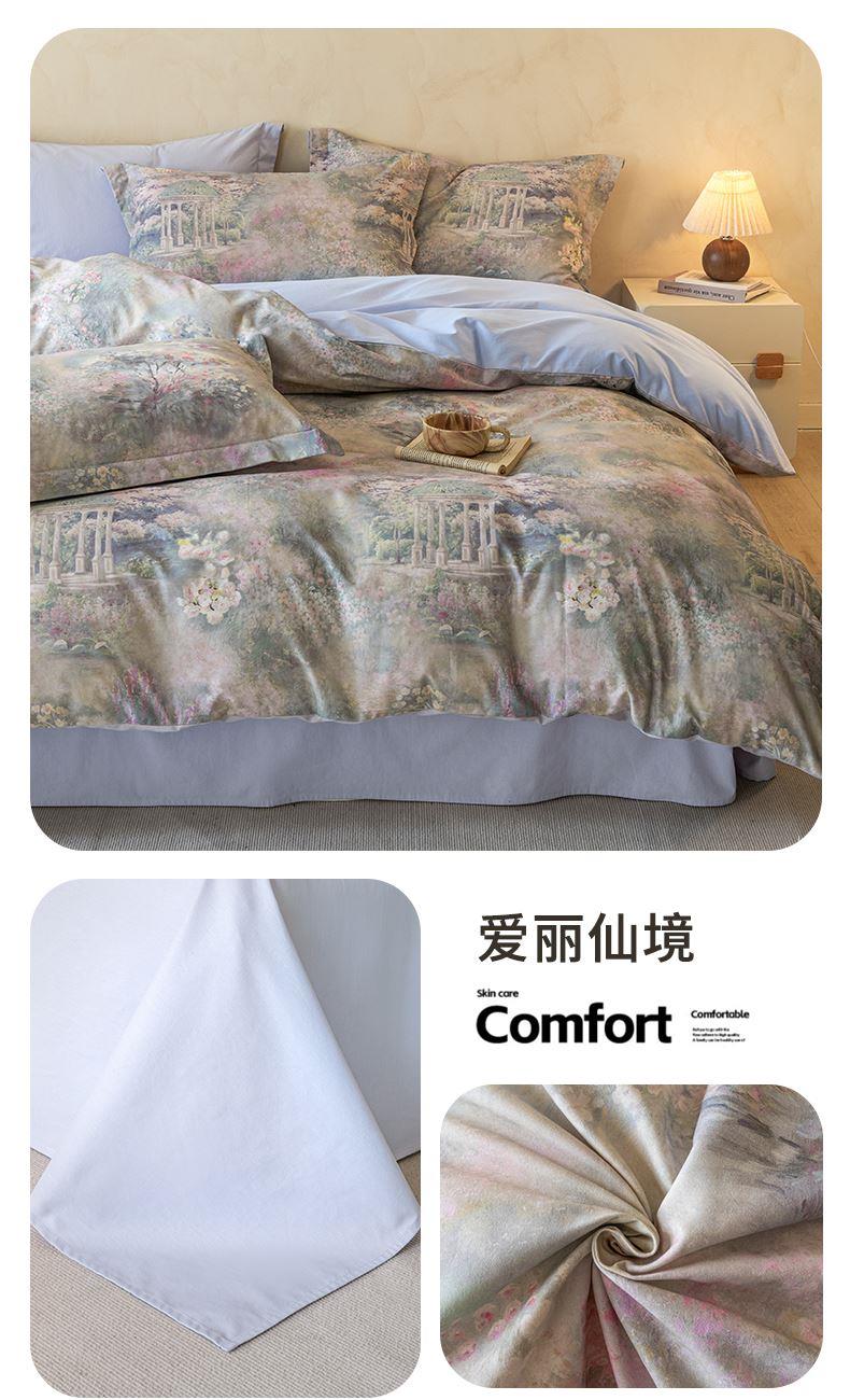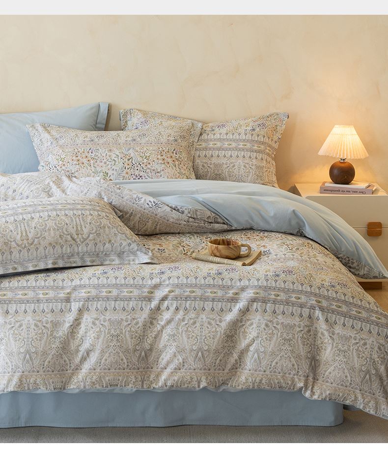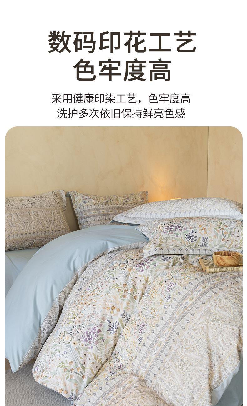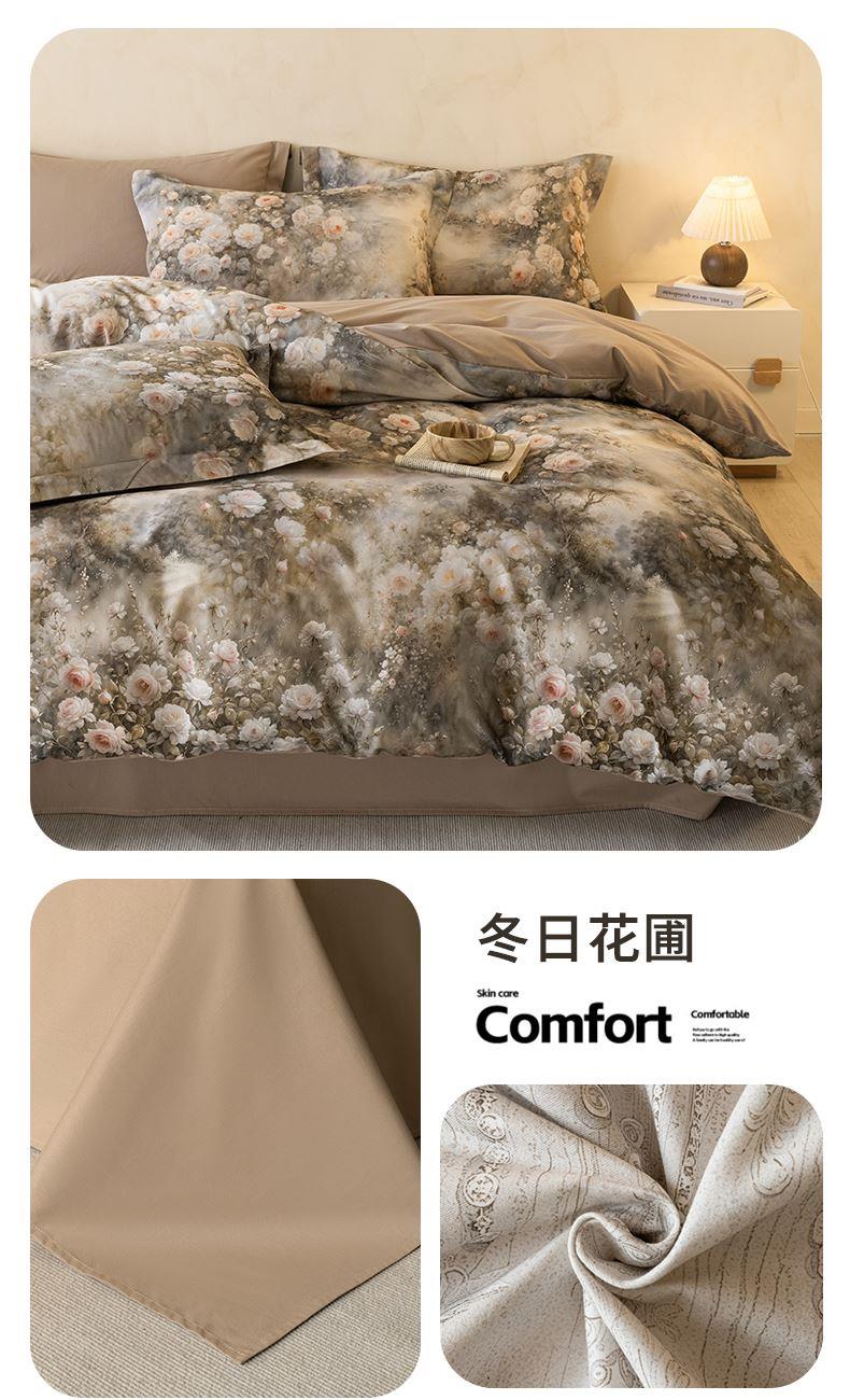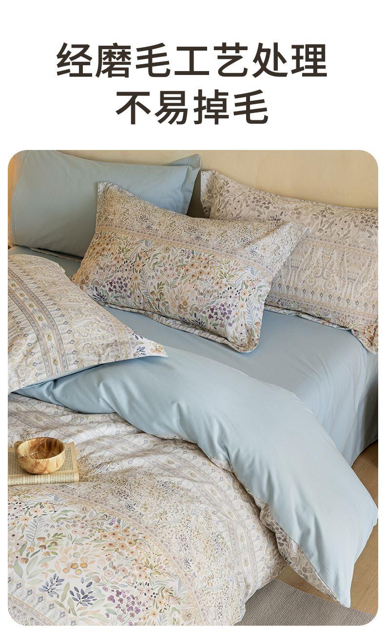 觸感暖意:加厚磨毛面料,如秋日暖陽輕覆肌膚,秋冬鉆進被窩瞬間驅散寒意,給你整夜溫柔包裹。精致數(shù)碼印花復刻復古層次感強,淺調(diào)配色自帶雅致氛圍感,鋪上床就像把藝術畫廊搬進臥室,ins 風、復古風場景都能適配。