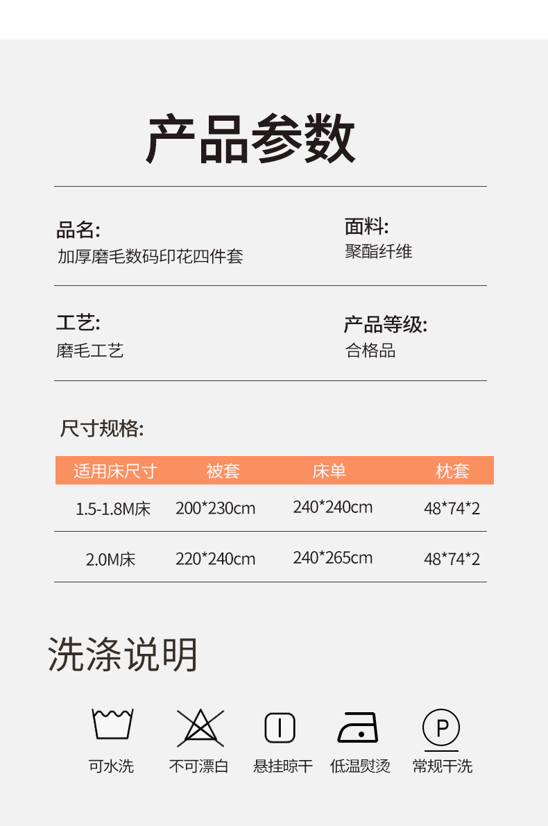 規(guī)格:1.5-1.8米床用 被套200*230 床單240*240 枕套48*74