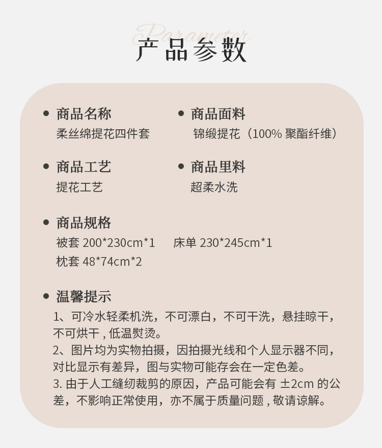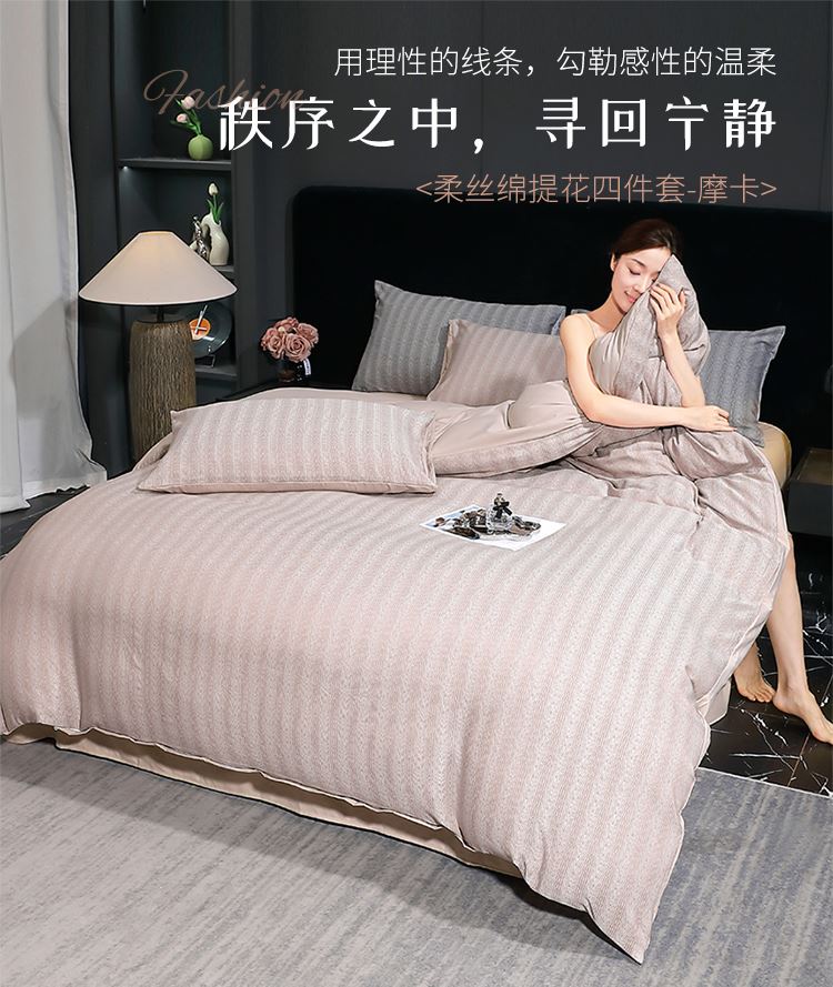 2025秋冬炫色錦絲緞提花四件套,優(yōu)雅的提花工藝,勝于普通印花。環(huán)?;钚杂∪荆济嫔珴甚r亮,垂懸感優(yōu)。110克高密克重,輕拉毛,絨感更強(qiáng)。里面搭配親膚純色超柔面料,手感細(xì)膩,親膚性佳。暗合被套,直角床單,信封枕,簡(jiǎn)約大氣,是一款適合四季使用的居家床品。