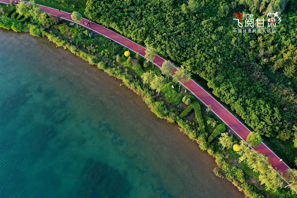 近日,夕陽下的甘肅省張掖市蘆水灣生態(tài)景區(qū)湖水湛藍(lán),草木翠綠,景色宜人。蘆水灣生態(tài)景區(qū)位于張掖濱河新區(qū),占地4500畝,其中水域面積2260畝,綠化林地1790畝,2018年評(píng)為國家4A級(jí)景區(qū),被譽(yù)為張掖城市的“后花園”和“加濕器”。