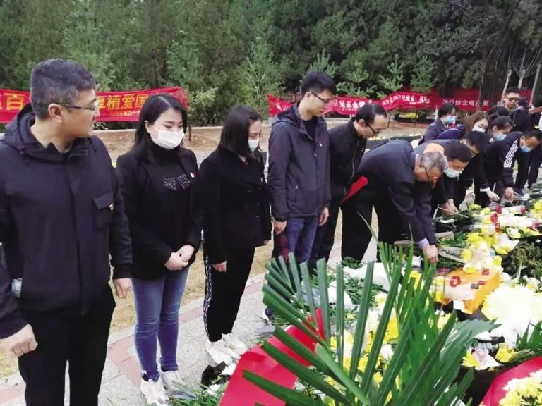 近日,市人社局直屬機關(guān)黨委組織60余名黨員干部在蘭州烈士陵園開展“緬懷戍邊英雄·傳承紅色基因”為主題的清明祭掃活動。 在“衛(wèi)國戍邊英雄”陳紅軍烈士悼念廣場,黨員們?yōu)橛⑿劬传I了花籃。