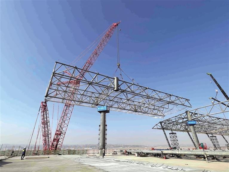中國甘肅網(wǎng)12月30日訊 據(jù)蘭州日報報道(記者 薛曉霞)近日,蘭州中川國際機(jī)場三期擴(kuò)建工程航站樓D指廊鋼結(jié)構(gòu)完成封頂。