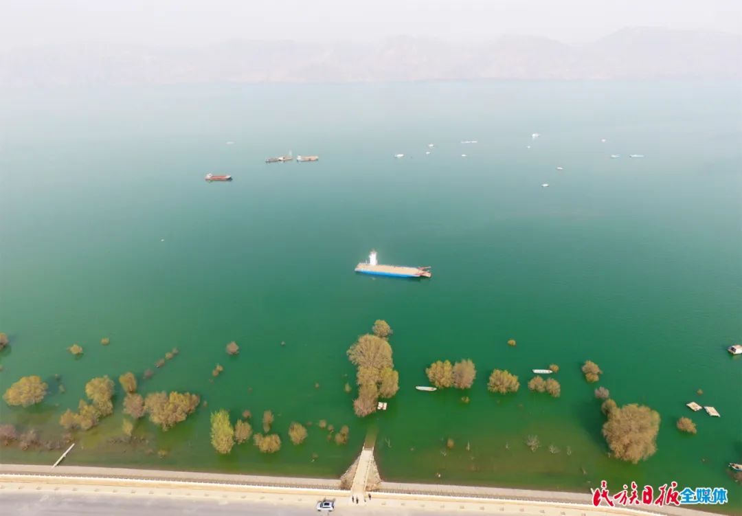 3月23日,記者來(lái)到庫(kù)區(qū)岸邊,遠(yuǎn)看,湖水湛藍(lán),輕舟游弋,水鳥嬉戲;近看,碧波蕩漾,水清見(jiàn)石,魚翔淺底。在人們的贊嘆聲中,湖面上劃過(guò)一艘小船,那是打撈清理黃河垃圾的清潔船。這艘船從早到晚,來(lái)回游動(dòng),及時(shí)清理著河面的垃圾。