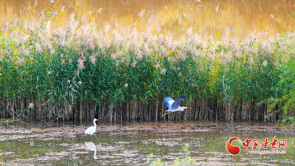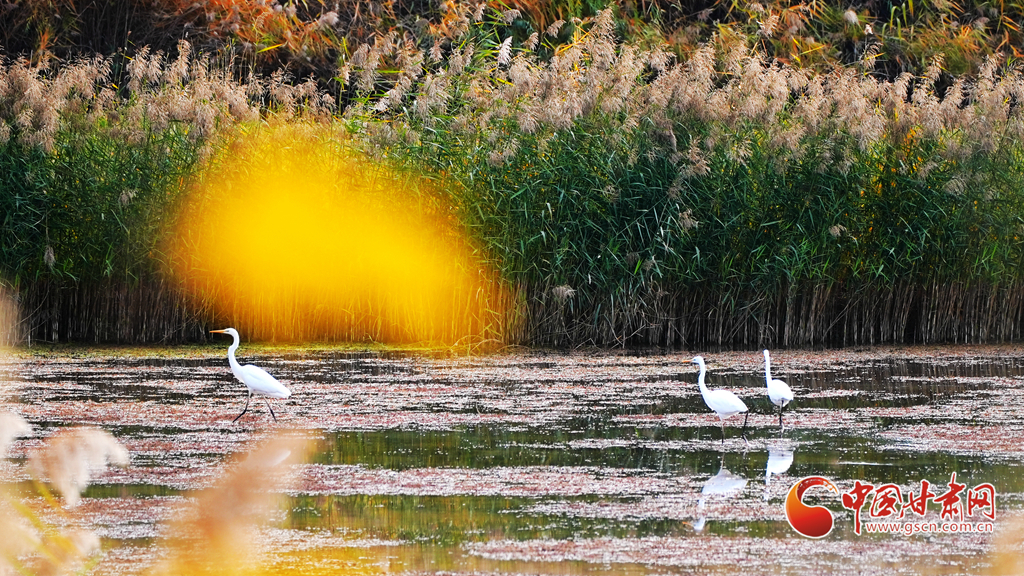 深秋時(shí)節(jié),永靖縣太極湖濕地蘆葦搖曳,野鴨戲水,白鷺蹁躚,宛如一幅美妙的秋日畫卷。