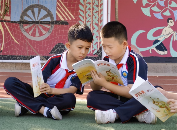 敦煌市南街小學(xué)學(xué)生在閱讀學(xué)生天地之《敦煌文化進(jìn)校園》特刊 。敦煌市委宣傳部供圖