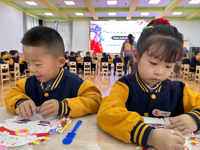 中國教育報-中國教育新聞網(wǎng)訊(記者尹曉軍通訊員張亮楊兆玉)近日,甘肅省張掖市山丹縣東街幼兒園邀請縣博物館聯(lián)合開展“傳承經(jīng)典國韻文化浸潤童心”傳統(tǒng)文化進(jìn)校園活動?;顒又校┪镳^的老師不僅為孩子們講述了京劇臉譜的內(nèi)涵、特點及分類,還帶領(lǐng)孩子們模仿了戲曲選段中的動作,現(xiàn)場唱了戲曲名段。在老師的講解示范下,孩子們巧手繪制了臉譜。現(xiàn)場孩子們熱情高漲、積極參與,傳統(tǒng)文化悄無聲息在孩子們心中“生根發(fā)芽”。