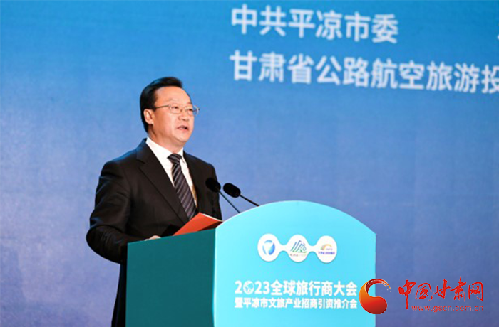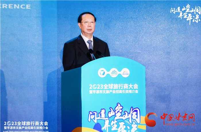 何效祖在致辭中說,平?jīng)鍪歉拭C向東開放的“門戶”城市,是風(fēng)景宜人的旅游城市,是甘肅布局的文旅康養(yǎng)基地和支撐“一核三帶”區(qū)域發(fā)展格局中的重要支點(diǎn),擁有崆峒山、大云寺·王母宮、瑤池溫泉等眾多聞名遐邇的人文和自然景觀。今天,我們與平?jīng)鍪形姓⒅袊眯猩鐓f(xié)會(huì)、甘肅公航旅集團(tuán)一道搭建平臺(tái),誠邀各位嘉賓走進(jìn)甘肅、深入平?jīng)?,組織開展宣傳推介、洽談合作、展示展銷、考察踩線等系列活動(dòng),就是要引導(dǎo)大家深度感知甘肅高質(zhì)量發(fā)展的強(qiáng)烈愿望,實(shí)地觸摸甘肅文旅如火如荼的生動(dòng)實(shí)踐,誠懇表達(dá)隴原兒女“視企業(yè)家為最寶貴財(cái)富”的真誠合作和赤誠服務(wù)之心。我們衷心希望,廣大中外旅行商和文旅專家、文旅企業(yè)家以本次大會(huì)為契機(jī),加強(qiáng)交流互鑒,深化務(wù)實(shí)合作,加大在甘投資力度,組織更多游客到甘肅觀光旅游,帶動(dòng)更多優(yōu)質(zhì)文旅企業(yè)和項(xiàng)目落戶甘肅,合力譜寫甘肅文旅高質(zhì)量發(fā)展的嶄新篇章!