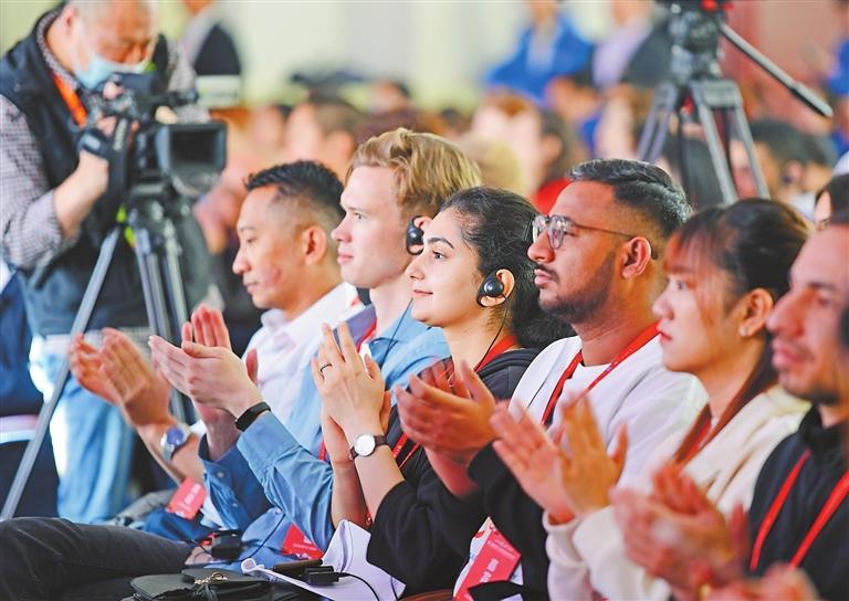 4月27日,甘肅旅游推介及國(guó)際旅行商合作大會(huì)舉辦,與會(huì)嘉賓聆聽推介。