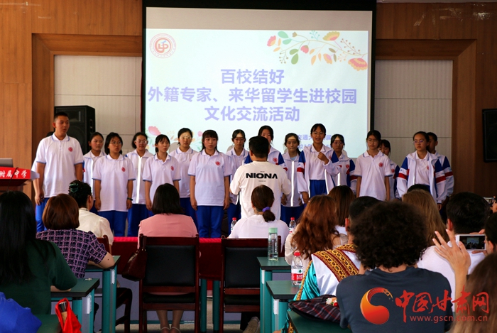 中國甘肅網(wǎng)6月26日訊 (西北角·中國甘肅網(wǎng)記者 張?zhí)m琴)6月25日下午,“百校結(jié)好”倡議之“外籍專家、來華留學(xué)生進校園”文化交流活動在蘭州交通大學(xué)附屬中學(xué)舉行。來自蘭州交通大學(xué)國際交流學(xué)院的外籍教師、來華留學(xué)生與該校師生熱情的互動交流,為今年“百校結(jié)好”倡議系列活動締結(jié)友誼之花再結(jié)“碩果”。