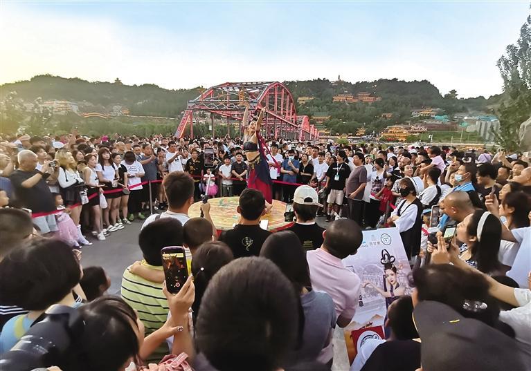 中國(guó)甘肅網(wǎng)7月24日訊 據(jù)蘭州日?qǐng)?bào)報(bào)道(記者 李超 攝)黃河之濱也很美,金城盛夏最誘人。隨著暑期開(kāi)啟,蘭州旅游市場(chǎng)開(kāi)啟火爆模式,機(jī)場(chǎng)和火車(chē)站人流井噴,熱門(mén)景區(qū)、博物館游客爆滿(mǎn),黃河風(fēng)情線人流如織,特色夜市熱鬧非凡。根據(jù)市發(fā)改委鐵建辦的航空數(shù)據(jù)顯示,今年7月1日至7月21日來(lái)蘭游客達(dá)到了603722人,同比增長(zhǎng)130.25%,與2019年同期相比增長(zhǎng)32.65%。