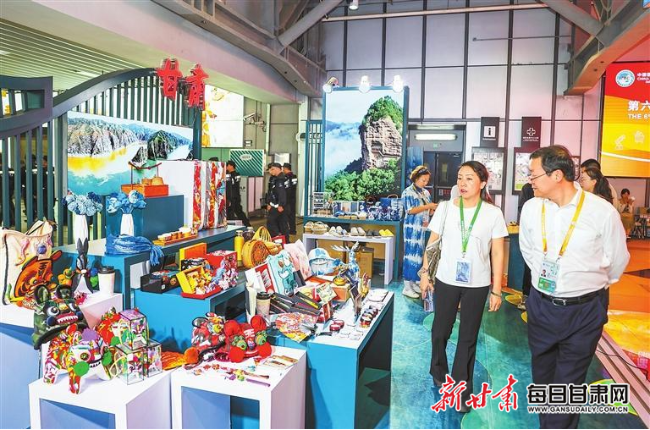 為更好推動(dòng)優(yōu)秀傳統(tǒng)文化創(chuàng)造性轉(zhuǎn)化、創(chuàng)新性發(fā)展,全面展示甘肅省非遺、文創(chuàng)最新成果,推動(dòng)文旅貿(mào)深度融合,我省以“交響絲路·如意甘肅”為主題,在進(jìn)博會(huì)人文交流展區(qū)搭建甘肅省展區(qū),展示蘭州黃河鐵橋、天水麥積山、平?jīng)鲠轻忌?、九色甘南扎尕那、張掖七彩丹霞、嘉峪關(guān)關(guān)城、隴南官鵝溝等甘肅省熱門景區(qū)圖片,全方位立體式向與會(huì)嘉賓展示甘肅厚重的文化底蘊(yùn)和豐富的旅游資源。