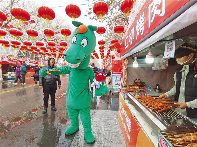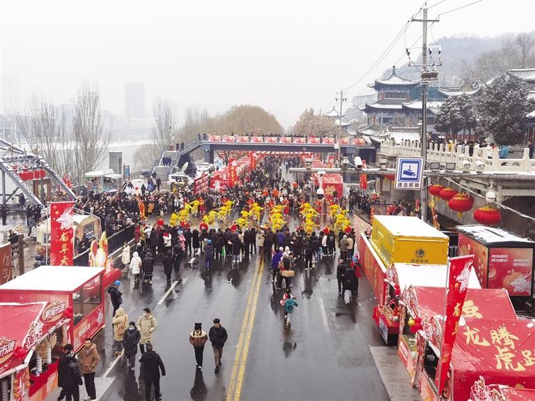 中國甘肅網(wǎng)2月3日訊 據(jù)蘭州晚報報道 2月2日北方小年當天,黃河市集在北濱河路白塔山公園門前熱鬧開市?,F(xiàn)場,大紅燈籠高高懸掛、福字帳篷年味滿滿,紅柳烤肉、冰糖雪梨、糖葫蘆、糖畫、牛奶雞蛋醪糟、丁娃燒餅等特色小吃攪動著市民游客的味蕾;民間手藝人制作的非遺手工藝品、洮硯、傳統(tǒng)絨花做工精巧,吸引了許多人駐足欣賞;太平鼓、舞獅等表演在市場上掀起了高潮,許多市民游客上前摸摸獅子討個好彩頭,在小年這天沉浸式體驗了新春市集里的幸福煙火氣息。