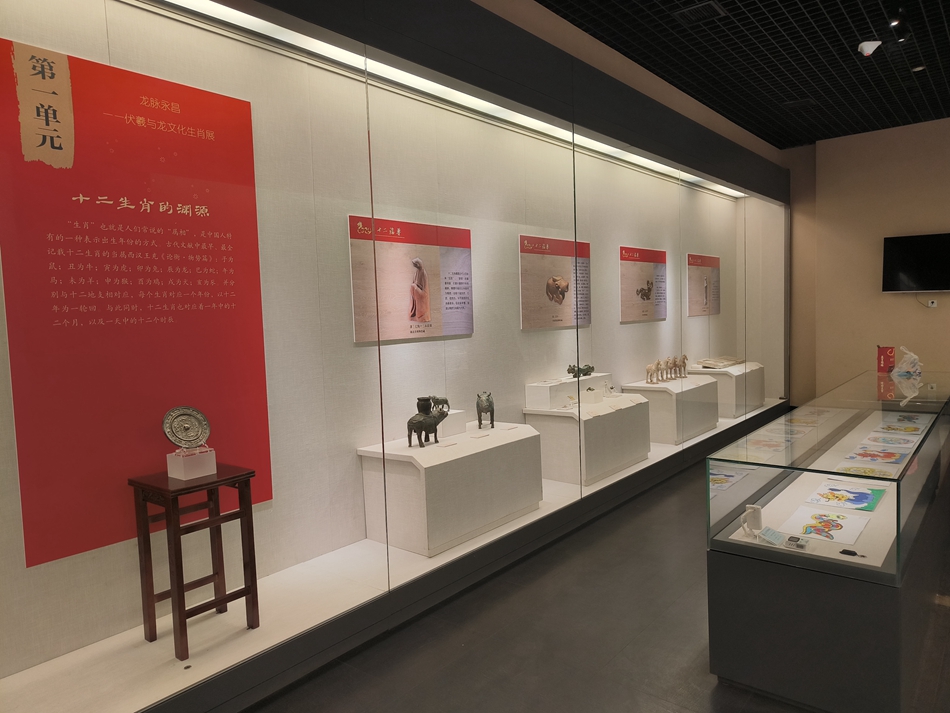 該展覽利用文物、文物展板和生肖文創(chuàng)相結(jié)合的模式,形成墻面、展柜和地面上下聯(lián)動,又協(xié)調(diào)統(tǒng)一的互動關(guān)系,向廣大觀眾立體式呈現(xiàn)天水悠久的伏羲文化文明史和伏羲時代的智慧,突出彰顯天水作為中國文明史起源地在中華文明發(fā)展歷史進程中的重要作用,向世界詮釋中國龍文化的淵源與博大,弘揚中華文明的悠久歷史,感知中華文化的博大精深。律回春漸,新元肇啟,歡迎大家走進天水市博物館,共度一個祥和喜慶的文化年!