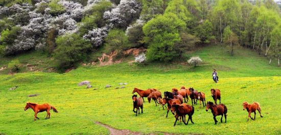 關(guān)山在很長一段時間一直是中國重要的牧馬之地。據(jù)史書記載,大將衛(wèi)青、霍去病北征匈奴,曾從關(guān)山征集戰(zhàn)馬14萬匹,足見當(dāng)時這里牧馬業(yè)的繁盛。然而現(xiàn)在,馬的蹤跡只是景區(qū)的點(diǎn)綴,要想看到萬馬奔騰的場面,要去河西走廊的山丹軍馬場。
