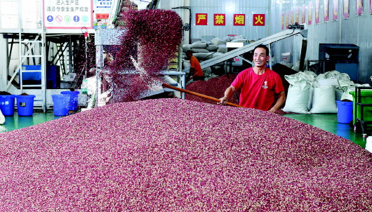 9月10日,甘谷花椒集散交易中心工人正在加工收購的花椒。甘谷花椒種植歷史悠久,所產(chǎn)花椒色澤鮮紅、粒大肉厚、麻味悠長、清香濃郁,是國內(nèi)紅花椒中的精品。目前,全縣花椒種植面積22萬畝,預計年產(chǎn)量1.6萬噸以上,產(chǎn)值11.5億元以上,花椒樹真正變成了群眾致富的“搖錢樹”。 新天水·天水日報記者李旺旺攝
