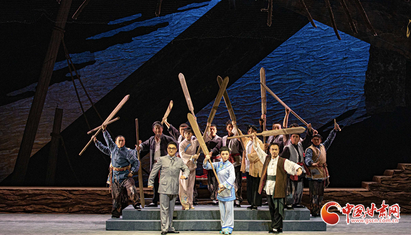 甘肅省隴劇院歷經(jīng)三年精心打造的隴劇《大河?xùn)|流》是國(guó)家藝術(shù)基金2024年度大型舞臺(tái)劇和作品創(chuàng)作資助項(xiàng)目。該劇以20世紀(jì)30年代末抗戰(zhàn)為背景,運(yùn)用具有地方特色的隴劇形式,生動(dòng)地描繪了大西北黃河邊的一群筏客子在國(guó)家危難之際,如何摒棄個(gè)人恩怨,團(tuán)結(jié)一致支援抗戰(zhàn),組成水上大型運(yùn)輸隊(duì),將大量物資安全送達(dá)抗戰(zhàn)前線的英勇壯舉。