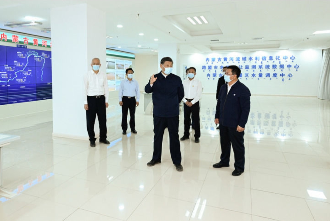 2023年6月5日至6日,中共中央總書記、國家主席、中央軍委主席習近平在內(nèi)蒙古巴彥淖爾考察,并主持召開加強荒漠化綜合防治和推進“三北”等重點生態(tài)工程建設(shè)座談會。這是6日上午,習近平在河套灌區(qū)水量信息化監(jiān)測中心考察。新華社記者申宏攝