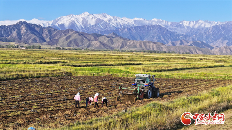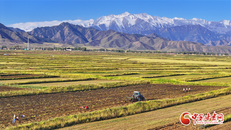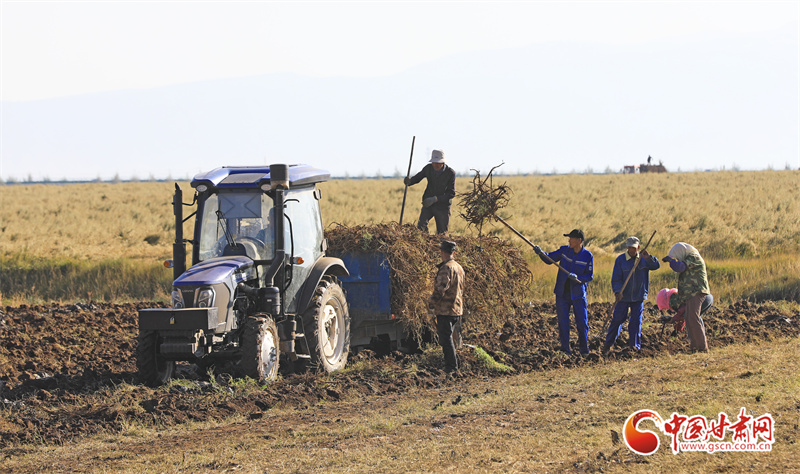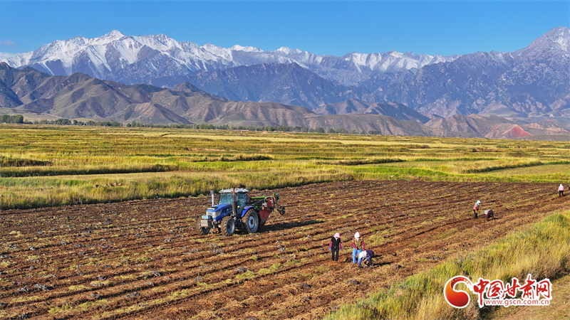 10月7日,位于祁連山腳下的張掖市民樂縣南豐鎮(zhèn)張連莊村的千畝黃芪種植基地,藥農們忙著采收黃芪,田間地頭一派豐收的繁忙景象。