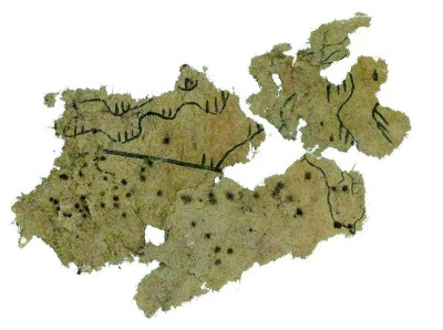 天水放馬灘漢紙本地圖。圖片由甘肅簡牘博物館提供