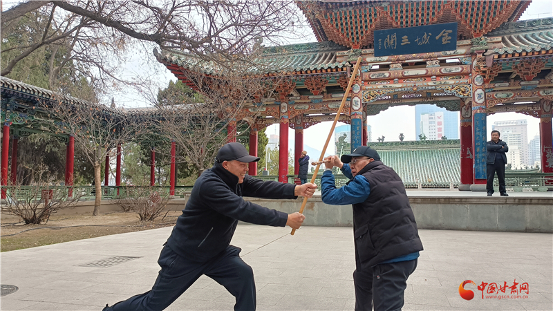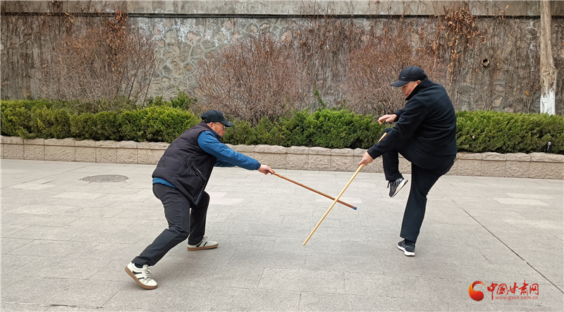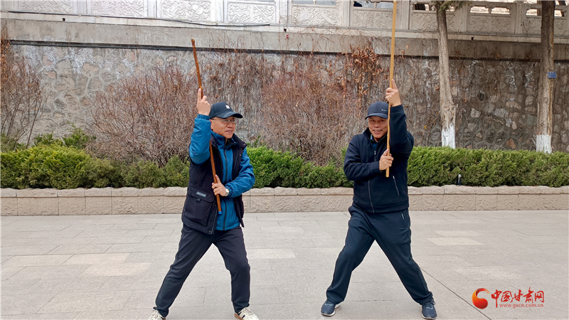 “鞭桿自古就有,甘肅天水、隴南、定西一帶也有習(xí)武者,我父親總結(jié)了蘭州纏海纏桿體系,為鞭桿百花園再添新力量。”王建國(guó)介紹蘭州纏海鞭桿體系。