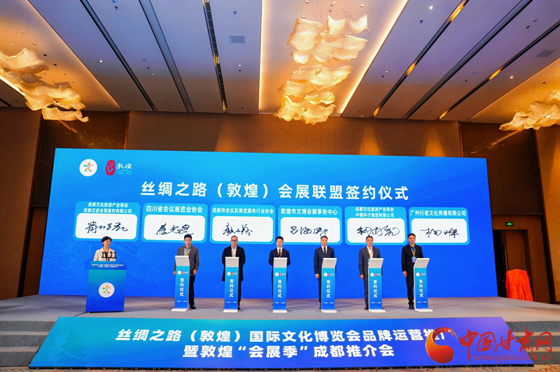 簽約儀式后,還舉行了絲綢之路(敦煌)會展聯(lián)盟(成都)推廣中心揭牌儀式,標(biāo)志著敦煌會展在成都及周邊地區(qū)推廣正式開啟,兩地會展合作進(jìn)入常態(tài)化、機(jī)制化新階段。