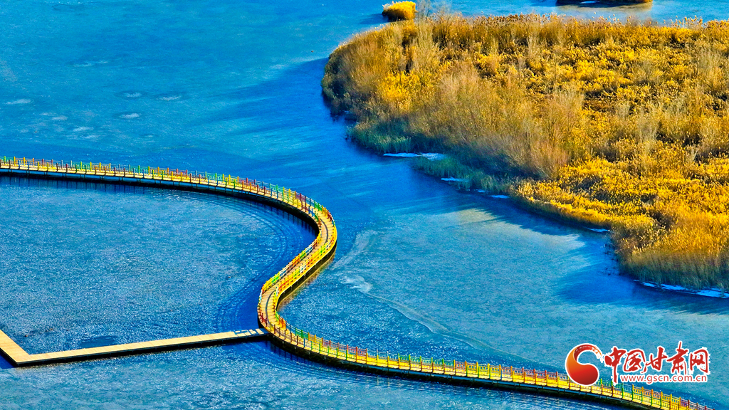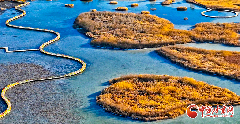 12月4日,張掖市黑河濕地國(guó)家級(jí)自然保護(hù)區(qū)內(nèi),經(jīng)風(fēng)霜浸染的蘆葦與蒲草披上金裝。從高空俯瞰,夕陽(yáng)下的蘆葦蕩如金色海洋,蘆花隨風(fēng)輕舞,碧水凝冰環(huán)繞其間,宛如一幅鋪展的濕地金畫卷,吸引眾多游客與攝影愛(ài)好者前來(lái)觀賞拍攝。