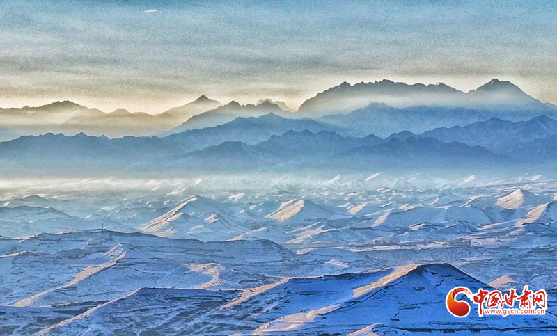 初冬時(shí)節(jié),位于張掖市民樂縣境內(nèi)的祁連山脈巍峨群鋒被一場(chǎng)大雪妝點(diǎn)的銀裝素裹,分外妖嬈,儼然一幅千里冰封萬里雪飄的北國風(fēng)光圖。