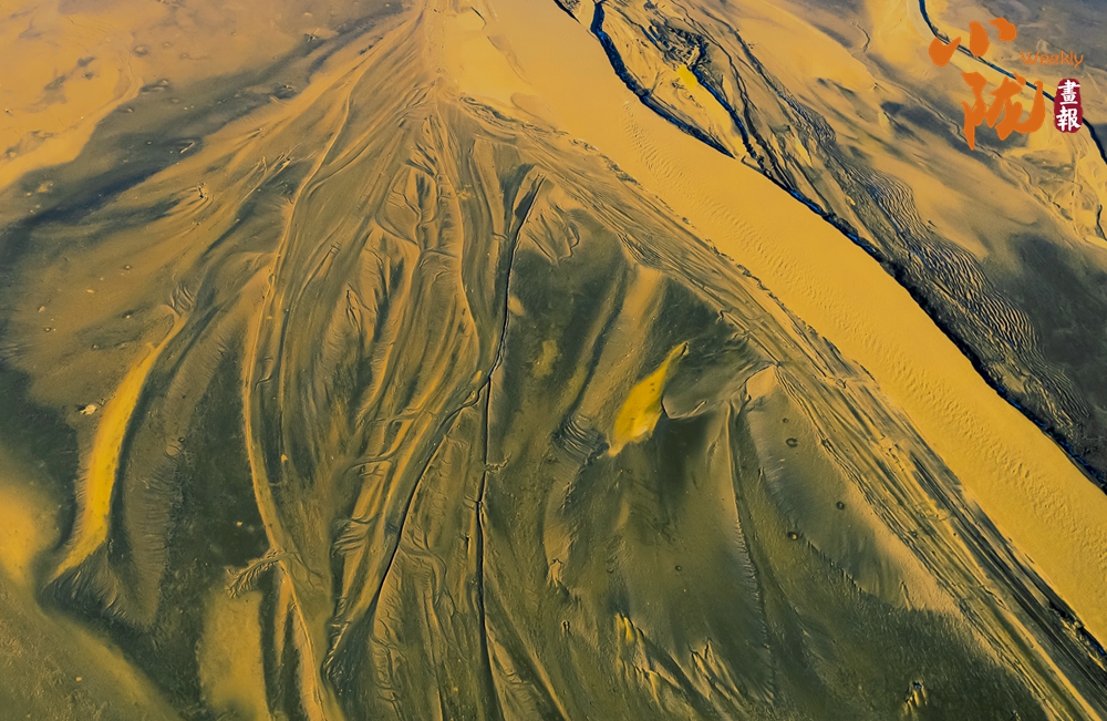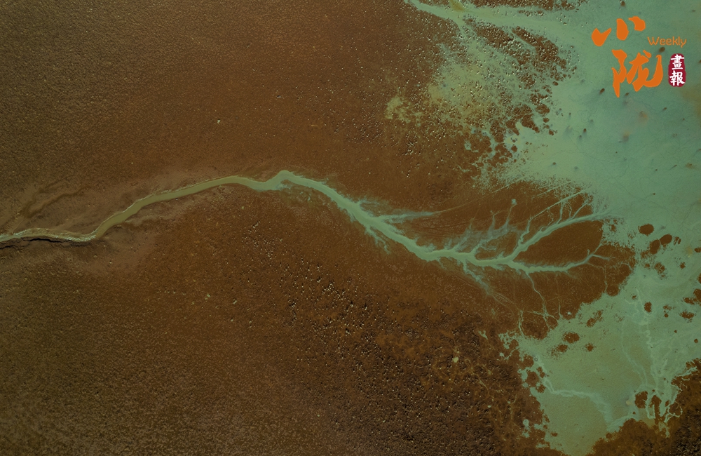潮水褪去,灘涂勾勒出極似樹根分支的有機形態(tài)——主脈粗壯有力,次脈隨之伸展,末梢則細(xì)密如須根,整片灘面仿佛成為一棵倒生巨樹的根系拓印,靜默中透出磅礴的地質(zhì)美感。