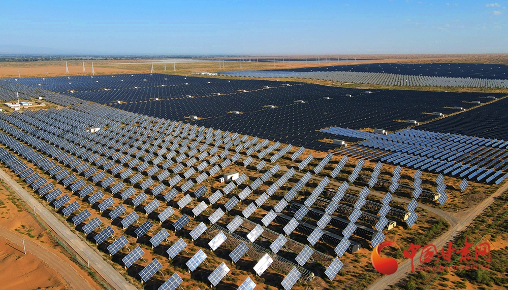 這是河西一處大型荒漠光伏電站,成片深藍色光伏板整齊排布,將太陽能轉(zhuǎn)化為電能,助力能源結(jié)構(gòu)轉(zhuǎn)型。劉忠 攝
