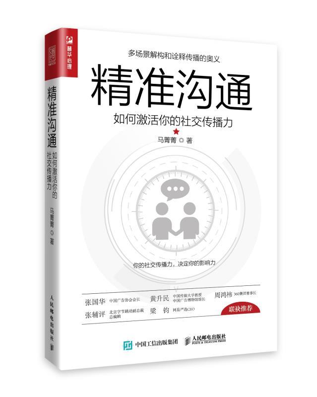 作為資深傳媒人和品牌傳播專家,在近日出版的《精準溝通》一書中,馬菁菁以通俗易懂的方式向普通大眾介紹傳播學(xué)的一些經(jīng)典理論,嘗試以傳播學(xué)的視角分析和歸納日常人際交往與溝通中常見的問題,并運用傳播學(xué)的理論和方法為讀者提供一種新的解決思路。
