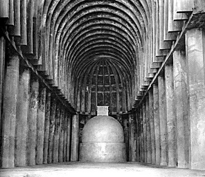 ③印度巴賈石窟12號支提窟內(nèi)景。來源:《東方建筑》