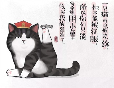 百萬(wàn)級(jí)漫畫(huà)作品《就喜歡你看不慣我又干不掉我的樣子》(簡(jiǎn)稱(chēng)“喜干”)的作者白茶,甚至被稱(chēng)為“社交媒體時(shí)代的豐子愷”。主人公吾皇、巴扎黑、少年、牛能是最先走進(jìn)讀者心里的“喜干元素”,在這些“貓貓狗狗”身上,國(guó)畫(huà)元素與現(xiàn)代漫畫(huà)表達(dá)完美融合,所有場(chǎng)景都有種基于國(guó)風(fēng)的“都市范兒”,好像一個(gè)小爪子就能撓進(jìn)你心,頗有“以古鑒今”的調(diào)調(diào)。書(shū)名本身就顯示了一種當(dāng)代人對(duì)待世界的態(tài)度,用微小而“獨(dú)一無(wú)二”的自我和世界互動(dòng)。經(jīng)典語(yǔ)錄如“無(wú)法改變的,學(xué)會(huì)去享受”“遇事冷靜,臉小三分”“既然彼此彼此,何不放過(guò)彼此”,疫情期間,狗狗巴扎黑更是定下了“自己遛自己”的計(jì)劃,暖心的畫(huà)面令讀者愛(ài)不釋手。