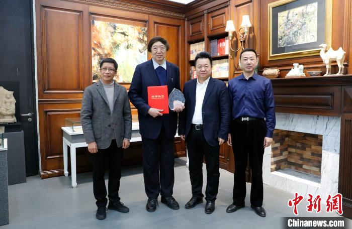 圖為主辦方卻專程來到天津大學(xué)馮驥才文學(xué)藝術(shù)研究院,送獎上門。 馮驥才文學(xué)藝術(shù)研究院供圖