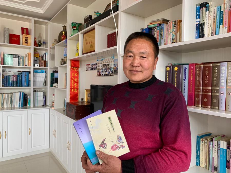 “高中畢業(yè)后我回鄉(xiāng)放牧,起初想看書也找不到書,后來外出打工才讀到更多的書,收藏的書也多了。”提及往事,孟克達來仍記憶猶新,“文學(xué)書、歷史書、工具書,我全都愛讀。”