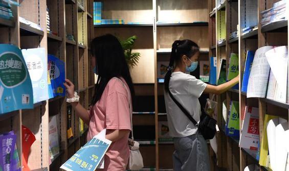 資料圖:圖為學(xué)生在書店里挑選練習(xí)題。 周毅 攝