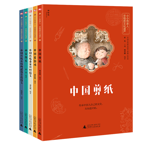 奶奶炕頭的窗花,皮影勾勒的世界,吳儂軟語(yǔ)縈繞的絲綢,故宮雄偉的大殿,穿越千年的鼓韻……“小小傳承人:非物質(zhì)文化遺產(chǎn)”系列傳統(tǒng)文化讀本日前推出第一輯,包括《中國(guó)剪紙》《中國(guó)皮影戲》《中國(guó)傳統(tǒng)桑蠶絲織技藝》《西安鼓樂(lè)》《中國(guó)傳統(tǒng)木結(jié)構(gòu)建筑營(yíng)造技藝》五本。