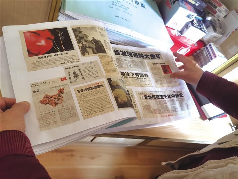 翻閱收藏的報(bào)紙剪報(bào)