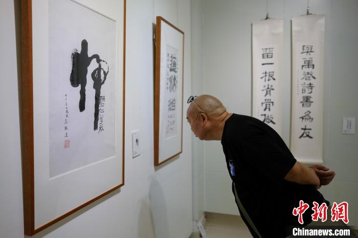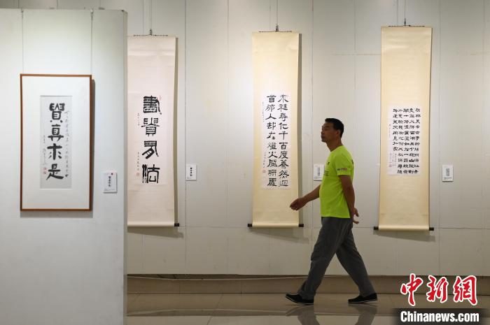 圖為觀眾參觀書(shū)法展?!『闻罾?nbsp;攝
