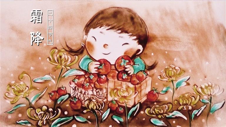 “天氣也如花語一般,有著未約定卻俗成的含義。”宋英杰對霜降節(jié)氣的解讀十分生動:“‘秋風(fēng)蕭瑟天氣涼,草木搖落露為霜。’霜降物候,草木黃落,蟄蟲俯,該飄零的飄零,該潛藏的潛藏。但霜色意濃,秋之,反倒是秋季最多彩的時期。”