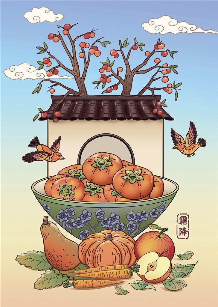 “每年10月23日前后為霜降,這是隸屬秋季的最后一個節(jié)氣。”據(jù)中國氣象局氣象服務(wù)首席專家、中央電視臺《天氣預(yù)報》節(jié)目主持人宋英杰介紹:“秋時已,亦稱秋(miao,樹梢)秋,即將畫上句號。秋日素秋,風(fēng)日謝風(fēng),辰日霜辰,草日衰草,木日疏木。‘氣肅而霜降,陰始凝也’,水汽凝華為白色冰晶。”