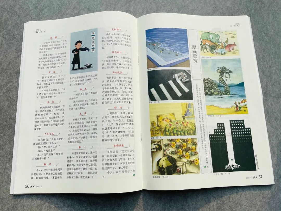 名家美文、藝術人生、熱門話題、幽默漫畫、生活感悟……高水準文學作品,富有哲思的小故事,6本雜志里全都有。