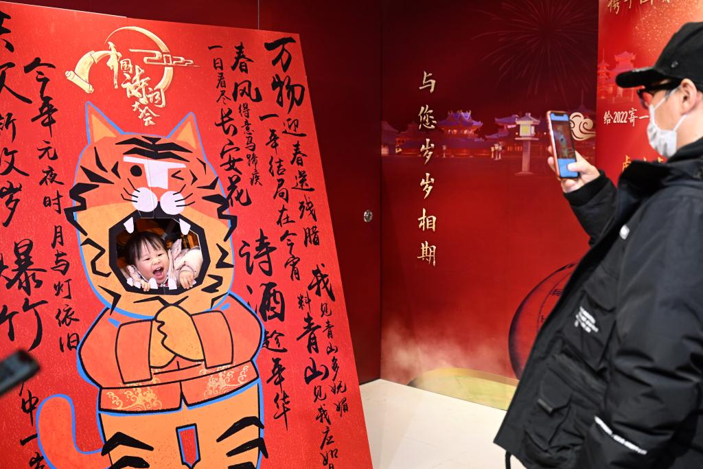春節(jié)假期,作為文化節(jié)目《2022中國(guó)詩詞大會(huì)》的線下活動(dòng),詩詞市集在北京國(guó)貿(mào)商城舉行?;顒?dòng)邀請(qǐng)市民寫下一句詩,給2022年寄出一張?jiān)娫~明信片,帶動(dòng)詩歌熱潮,推動(dòng)詩詞文化走入百姓家。
